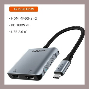 HDMI 분배기 CABLETIME USB 허브 MST 4K 8K 유형 듀얼 어댑터 Mac 노트북 멀티 스트림 PD 100w 디스플레이 도크