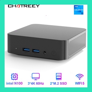 마이크로 PC N100 Chatreey 소형 데스크톱 컴퓨터 Win11 Pro 지원 4K 듀얼 HD 3화면 디스플레이 Type-C WiFi 5 BT4.2