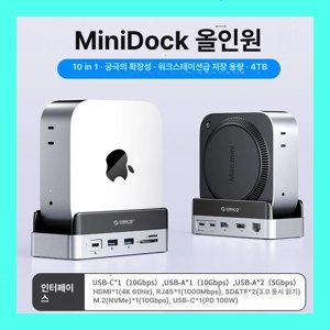 맥미니 M2 M4용 타입C 확장 도크 USB 하드 확장기 데스크탑 스탠드, 1개, 10-in-1 맥스 에디션 4TB