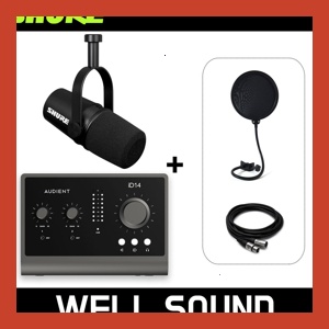 SHURE 슈어 MV7X 팟캐스트 다이나믹 마이크 Audient ID14 MK2 오디오 인터페이스 패키지, MV7X+iD14 MK2+팝필터+케이블