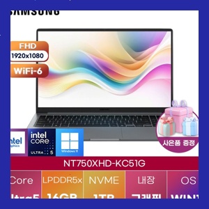 삼성전자 갤럭시북5 NT750XHD-KC51G Ultra5 Intel Graphics WIN 11 HOME 가성비 업무용 사무용 노트북