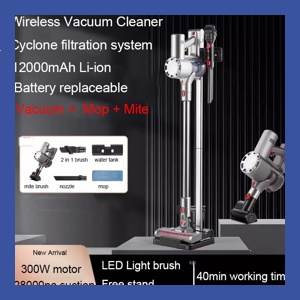부품 무선 진공 청소기 호환 브러시리스 BLDC 모터 스틱 최대 40 분 작동 시간 2000mAh 충전식 배터리 6 인 1 28KPA 300W