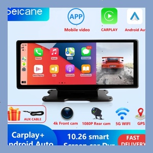 Seicane 차량용 듀얼 렌즈 백미러 4K 인치 카플레이 대시 와이파이 안드로이드 자동 DVR 비디오 GPS 24 시간 주차 AUX
