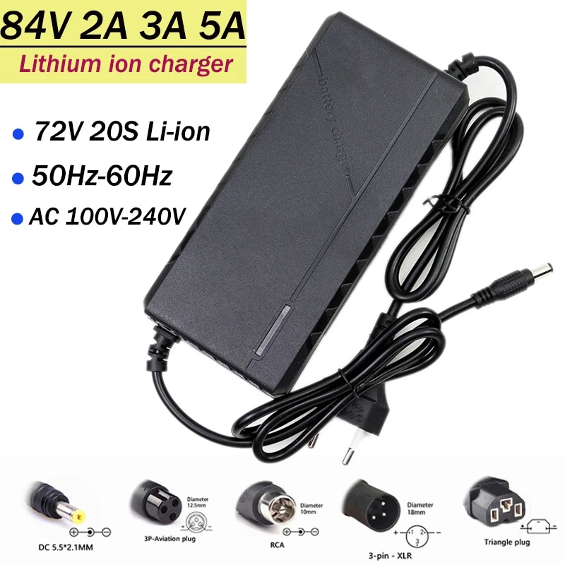 새로운 72V 2A 3A 5A 리튬 이온 충전기 20S 84V 배터리 팩 스마트 보호 AC110220W 5060Hz 전기 자전거 오토바이 충전기