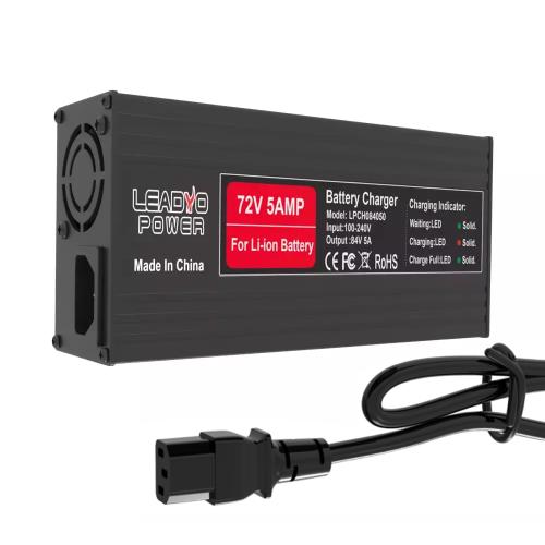 전기 자전거용 리튬 이온 배터리 충전기 IEC 충전기 포트 포함 전기 오토바이 84V 5A 20S 72V