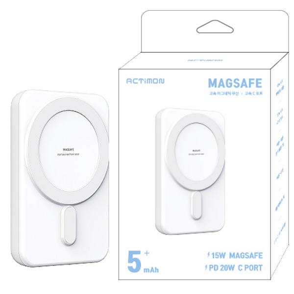 맥세이프 무선 고속충전 보조배터리 5000mAh + C to C 케이블 + 메탈 플레이트 /스마트 거치대