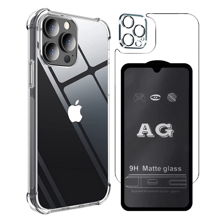 투명 젤하드 범퍼 케이스 + 지문방지 풀커버 강화유리 올인원 패키지 (아이폰 케이스 + 전면 후면 카메라 강화 유리)