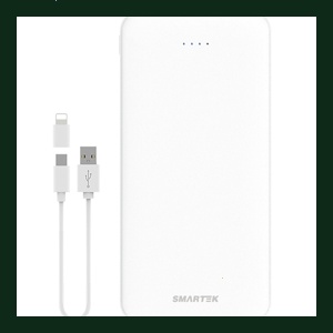 스마텍 듀얼포트 슬림보조배터리 20000mAh c타입 케이블 + 8핀 젠더, 화이트, STPB-SL2(WH)